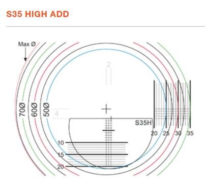 Bifokalt brilleglass med S35 - segment - high add.